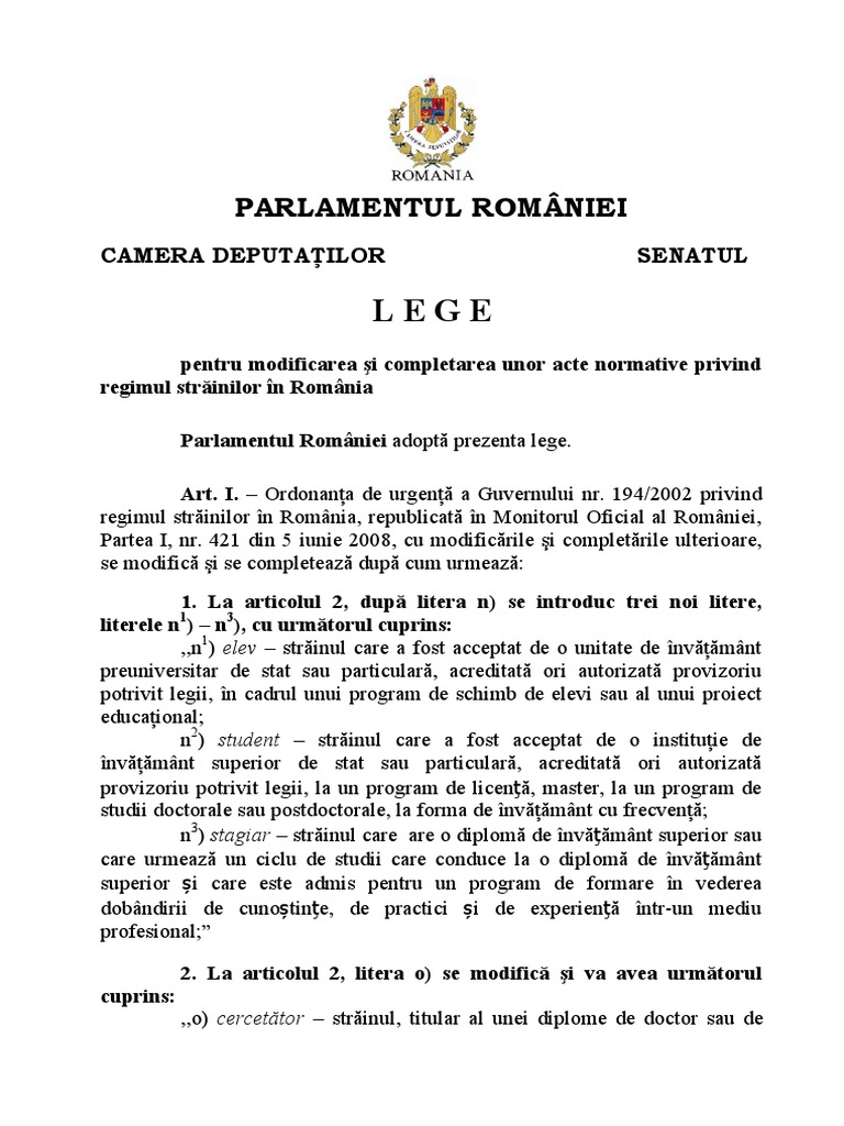 194 din 12 decembrie 2002. Regimul juridic al strainilor in romania. 157 din 11 iulie 2011 pentru modificarea şi completarea unor acte normative privind regimul străinilor în românia. Președintele klaus iohannis a semnat, ieri, decretul pentru promulgarea legii pentru modificarea și completarea unor acte normative privind regimul străinilor în românia.străinilor intrați în. A) conditii cu privire la gazduirea strainilor.