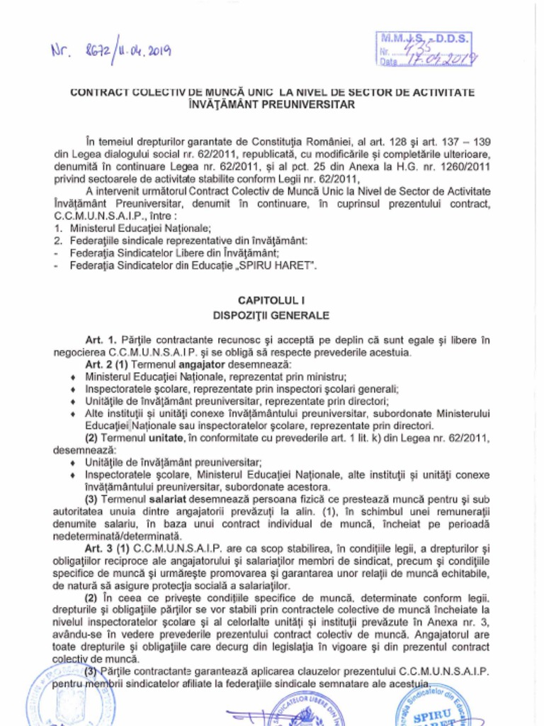 Contract colectiv de munca 2019. Contract colectiv de munca personal contractual 2019. Prezentul contract colectiv de muncă, denumit în continuare ccm, este încheiat, în baza prevederilor legii nr.