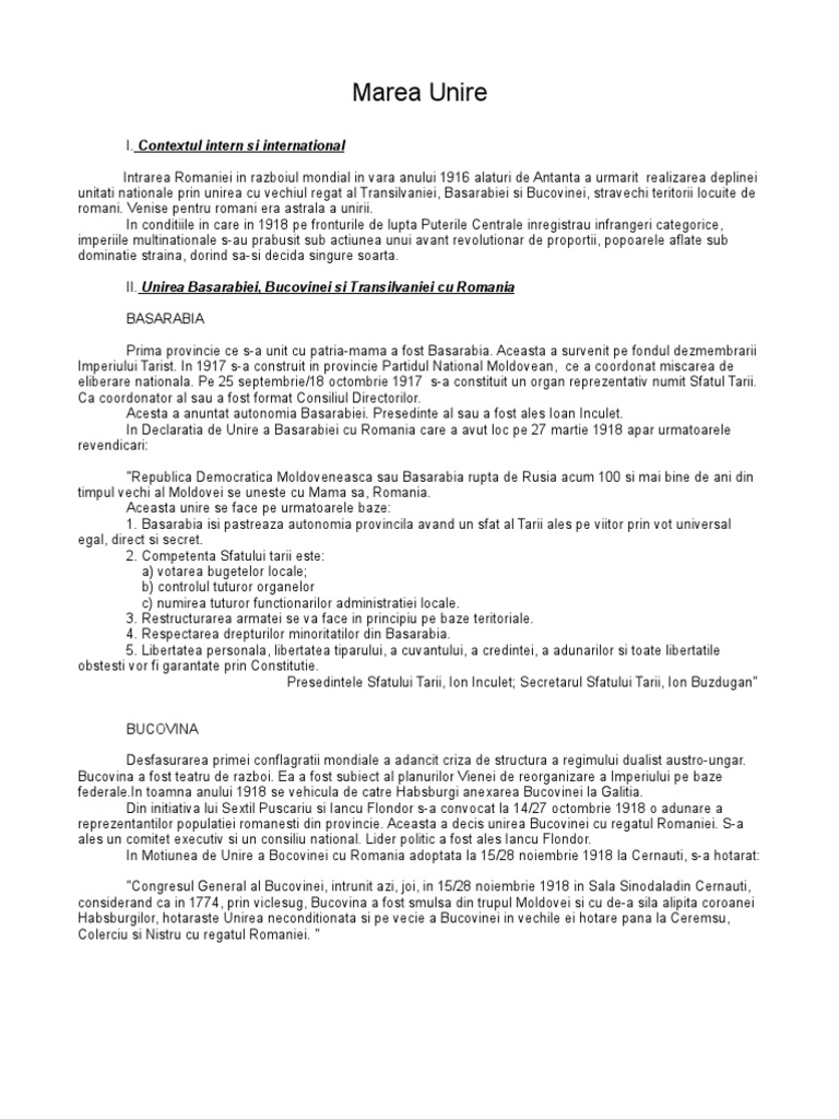 untuk "Unirea Basarabiei Cu Romania Referat"
